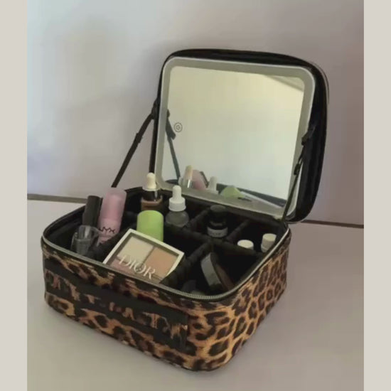 GlowCase™ combina diseño, orden y tecnología para que puedas llevar todos tus cosméticos protegidos y maquillarte cómodamente incluso en lugares con poca iluminación.